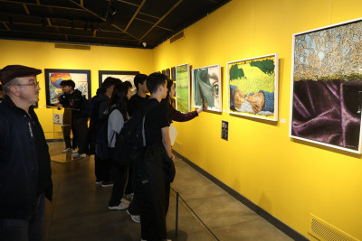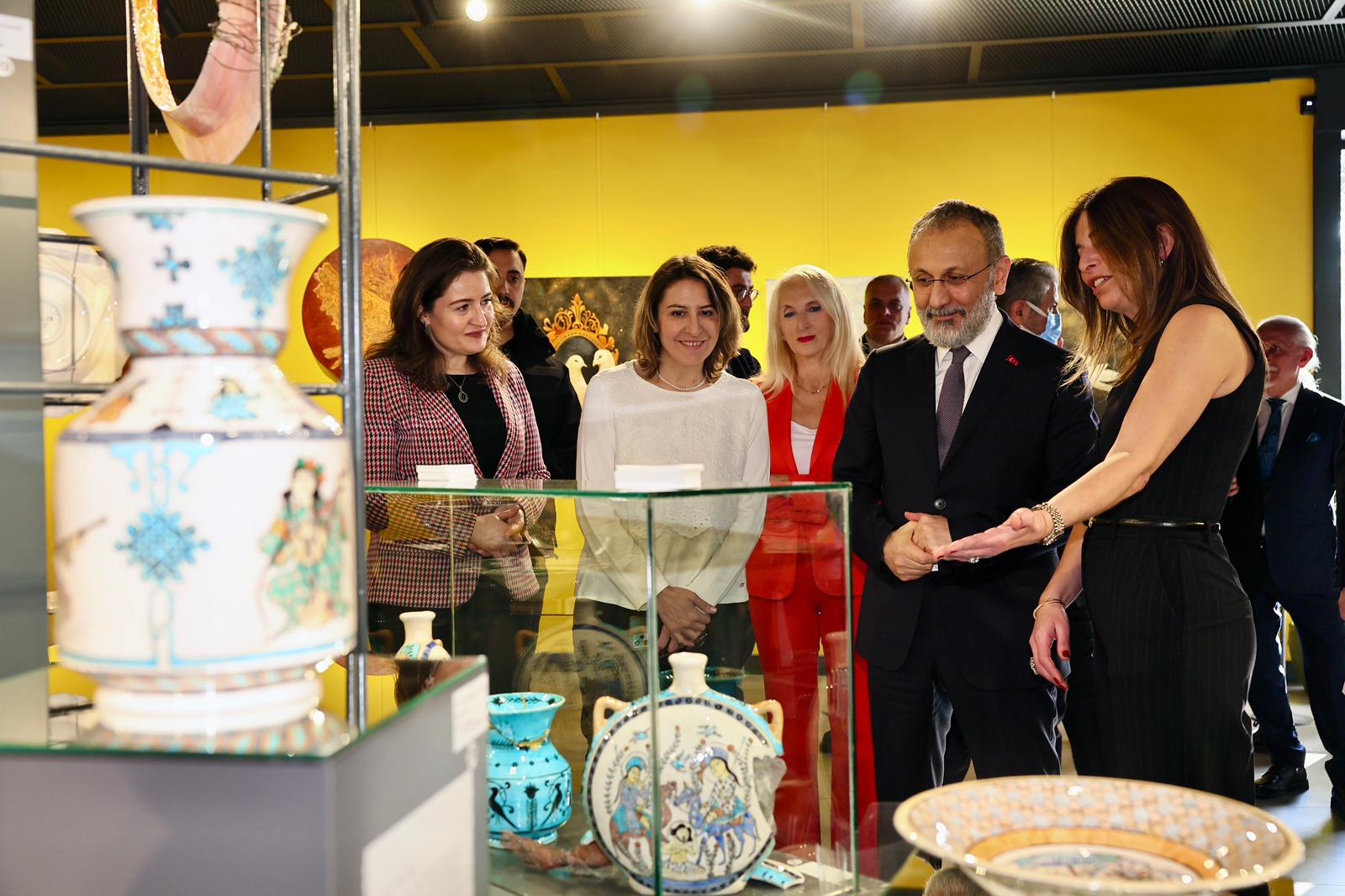 Konuşmaların ardından gerçekleşen kurdele kesiminden sonra Başkan Mithat Bülent Özmen sergiyi gezerek, sanatçılardan eserleriyle ilgili bilgi aldı.