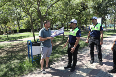 Çalışmalarda ekipler ilçenin yeşil alanlarına, parklara ve ormanlık alanlara konu ile ilgili uyarı afişleri asıyorlar.