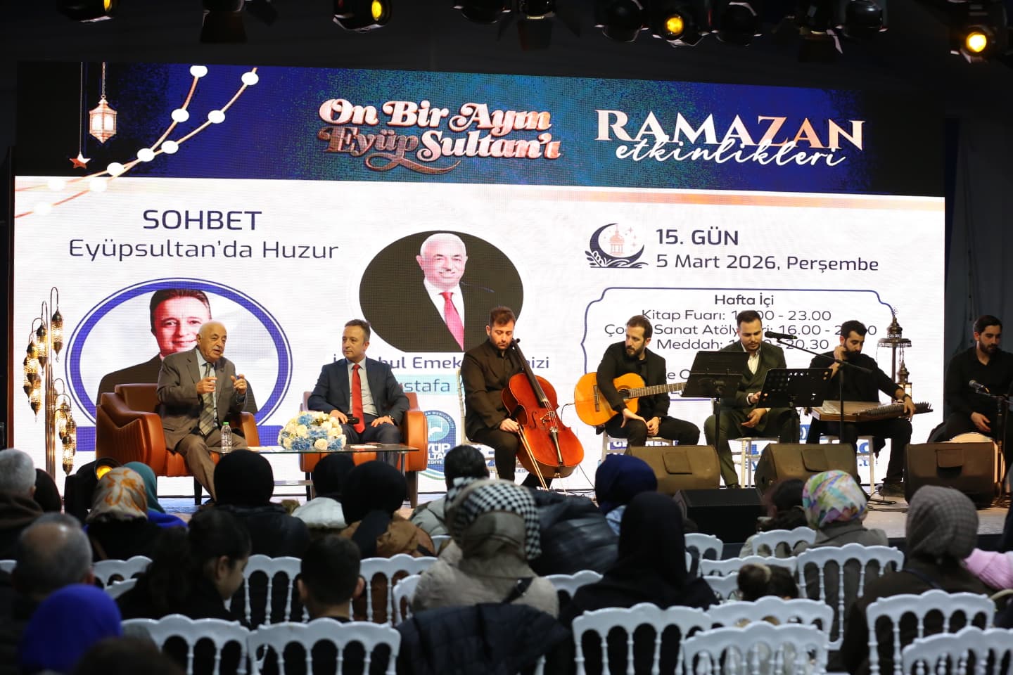 Eyüpsultan Belediyesi, Ramazan ayının manevi atmosferini sanat, edebiyat ve musiki ile buluşturan etkinliklerine devam ediyor. Bahariye Caddesi’nde kurulan etkinlik çadırında gerçekleştirilen dinletiler ve Ramazan sohbetleri, Eyüpsultanlılara ve ilçeye gelen misafirlere huzur dolu akşamlar yaşatıyor.
