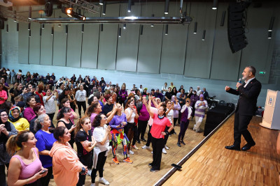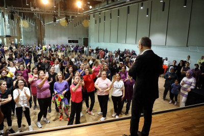 Etkinliğin devam eden bölümünde, uzman eğitmenler eşliğinde zumba yapan, ritimle birleşen ve enerjilerini tazeleyen kadınlar “Birlikte Güçlüyüz!” mesajı verdiler.