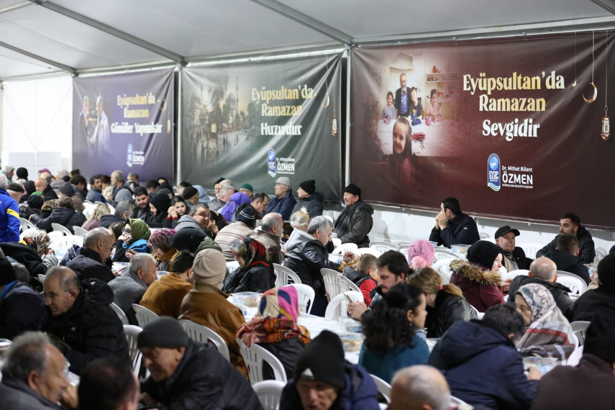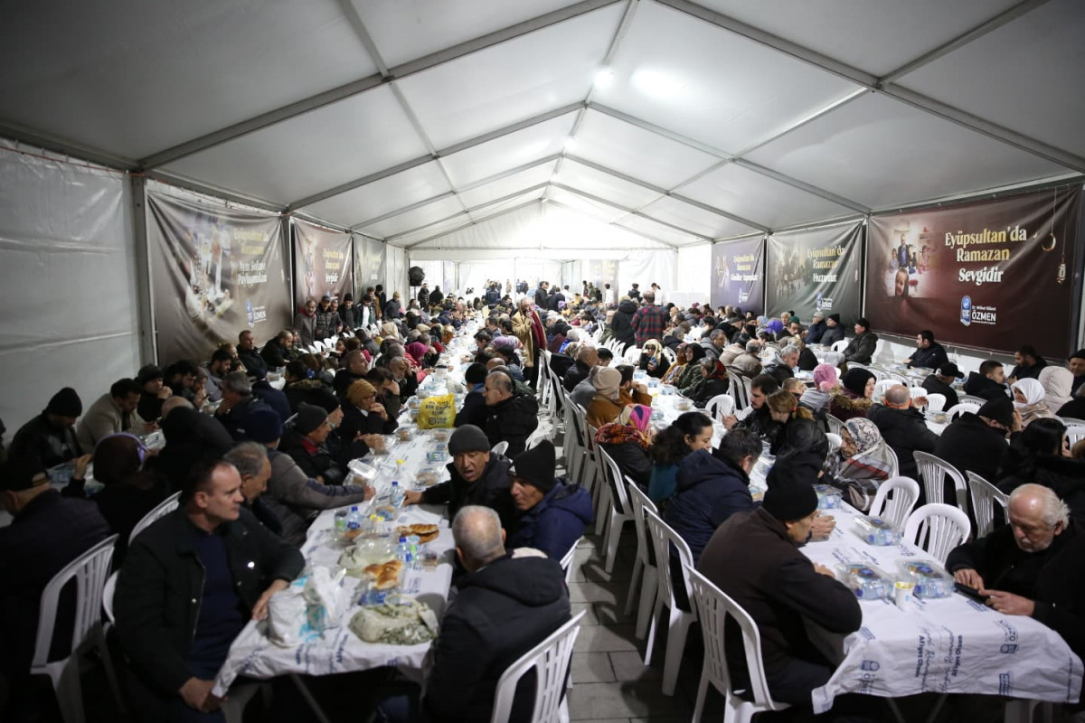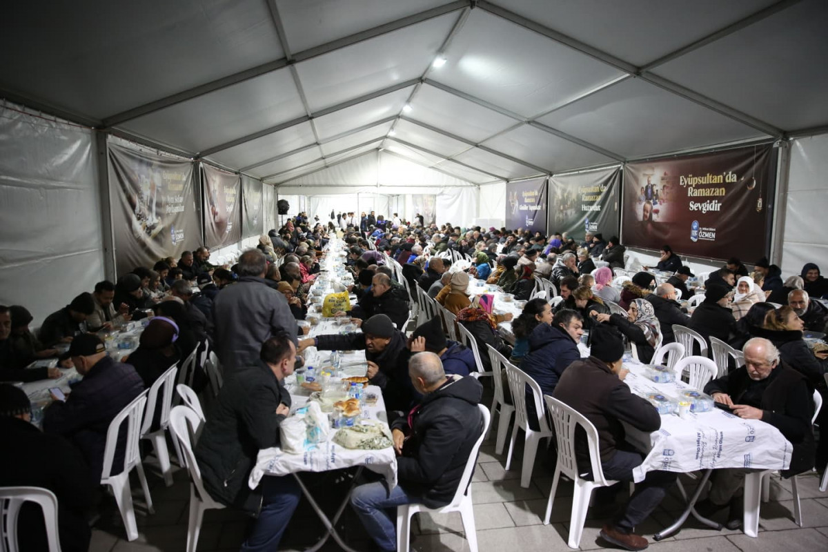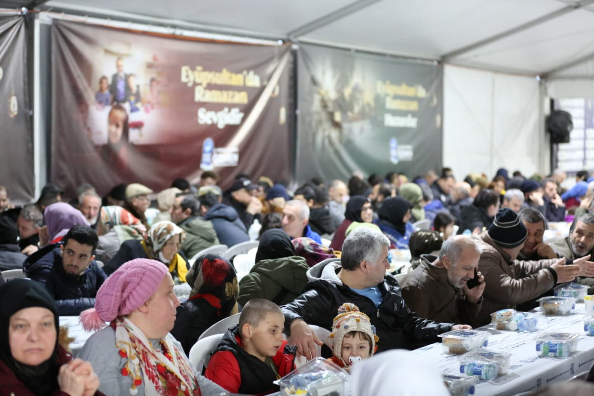 Eyüpsultan Belediyesi, oruçlarını Eyüsultan’da açmak için Türkiye’nin dört bir yanından gelen misafirlerini en güzel şekilde ağırlamak için Sultan Reşat Türbesi önünde Bahariye Caddesi üzerine kurulan etkinlik çadırında her gün 1000 kişilik iftar yemeği veriyor. Kurulan gönül sofralarında vatandaşlar aynı lokmayı paylaşarak Ramazan’ın bereketini birlikte yaşıyor.